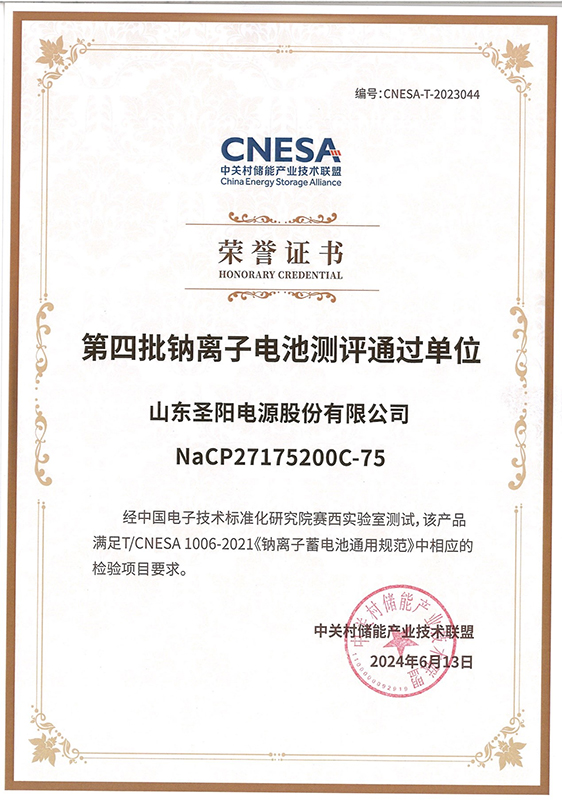 枣庄圣阳股份荣登“全国第四批钠离子电池测评通过单位”榜单